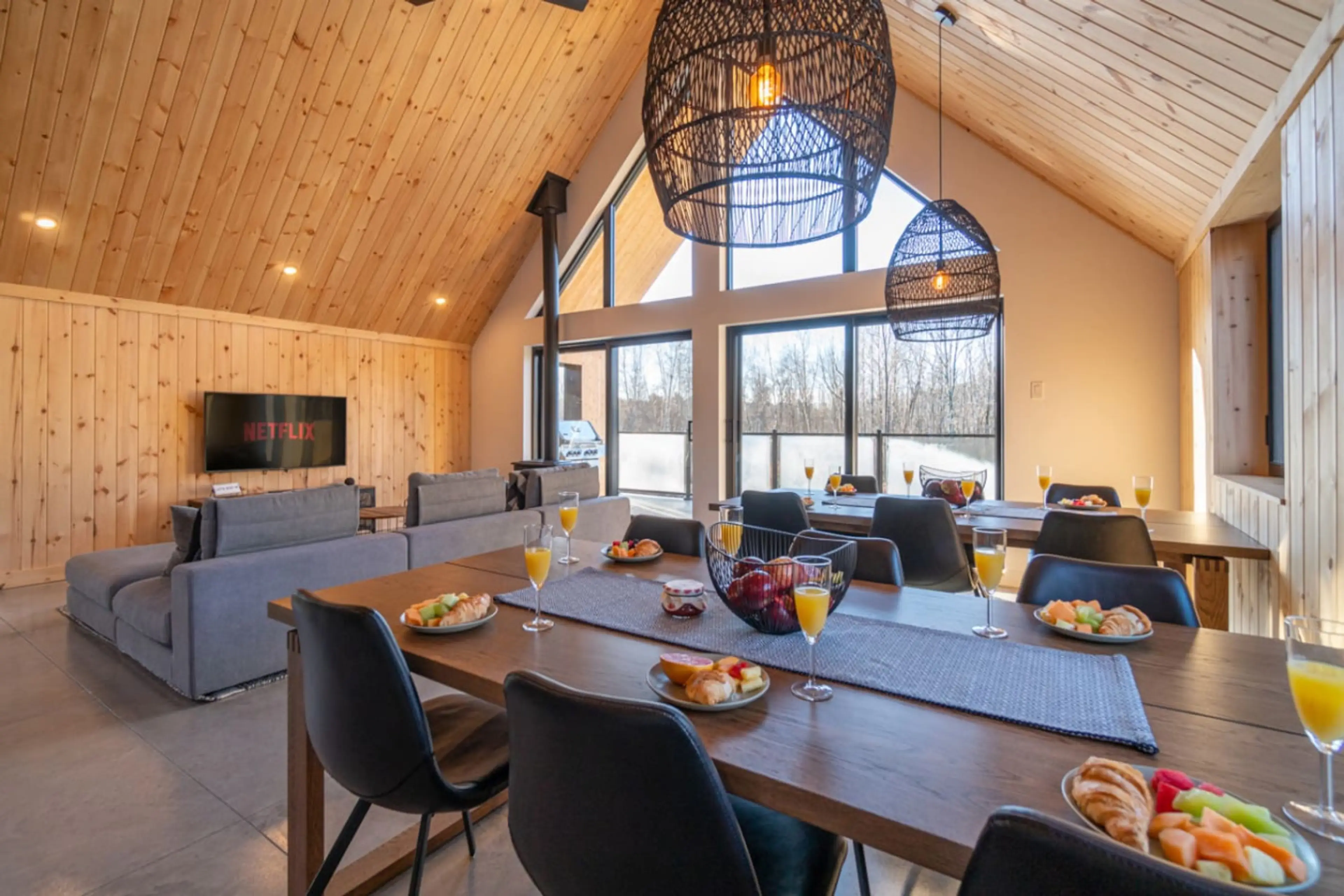 LUXUEUX CHALET POUVANT ACCEUILLIR 15 ADULTES + 2 ENFANTS *** Vous pouvez louer son chalet voisin jumeau ici : www.airbnb.com/h/osta *** Cyclistes, skieurs et amateurs de plein air, vous serez ébahis par la beauté et le confort de ce magnifique chalet Scandinave neuf haut de gamme construit pour l...